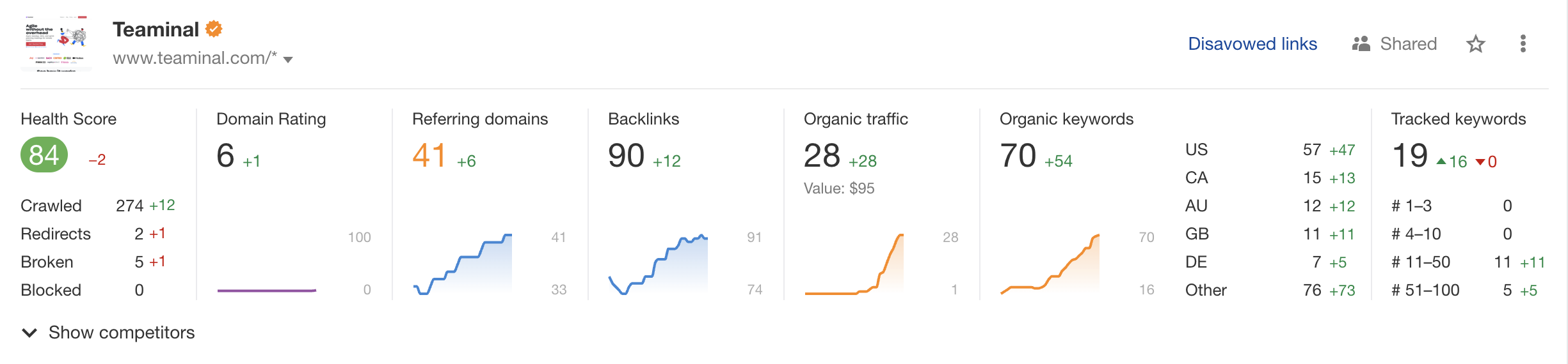 As I continue investing in SEO, some of the lowest-hanging fruit is “alternative to” pages explaining how Teaminal stacks up against competitors. Last month I created my first few of these (which are already ranking in Google), and this month I added 11 more: