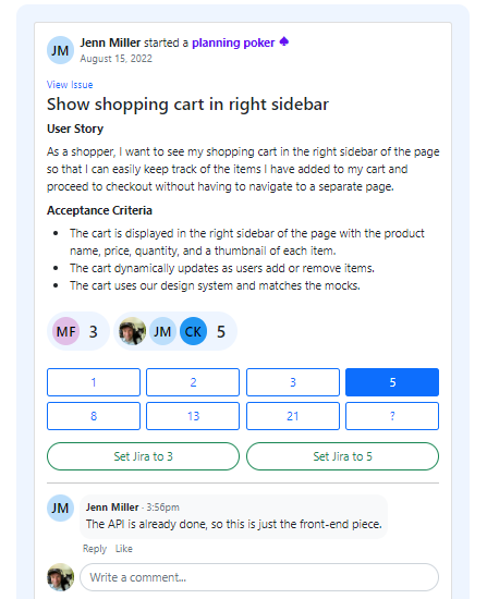 Our tool is designed to make backlog refinement simple, quick, and async with features like planning poker, automatic item surfacing, comment threads, and integrations so that sprint planning can be done in as little as 5–15 minutes.